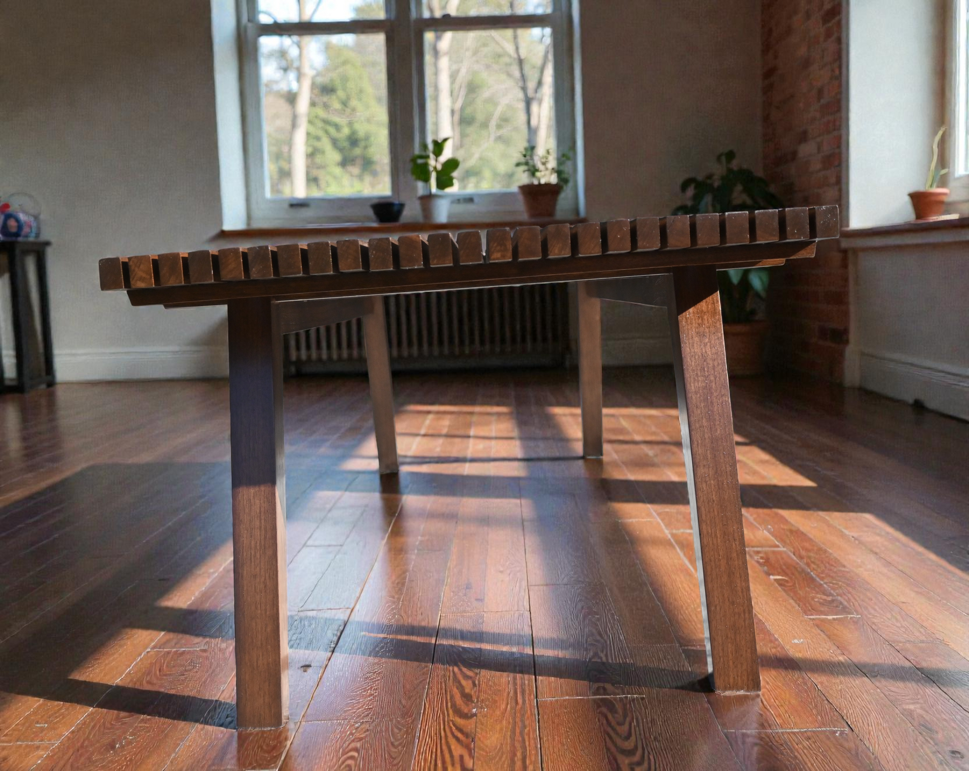 Upgrade your new, mid-century lifestyle with this elegant slat table. Inspired by the designs of Herman Miller and George Nelson, and handcrafted from rich, solid walnut. This slat table is sure to create a warm, inviting atmosphere in your home.